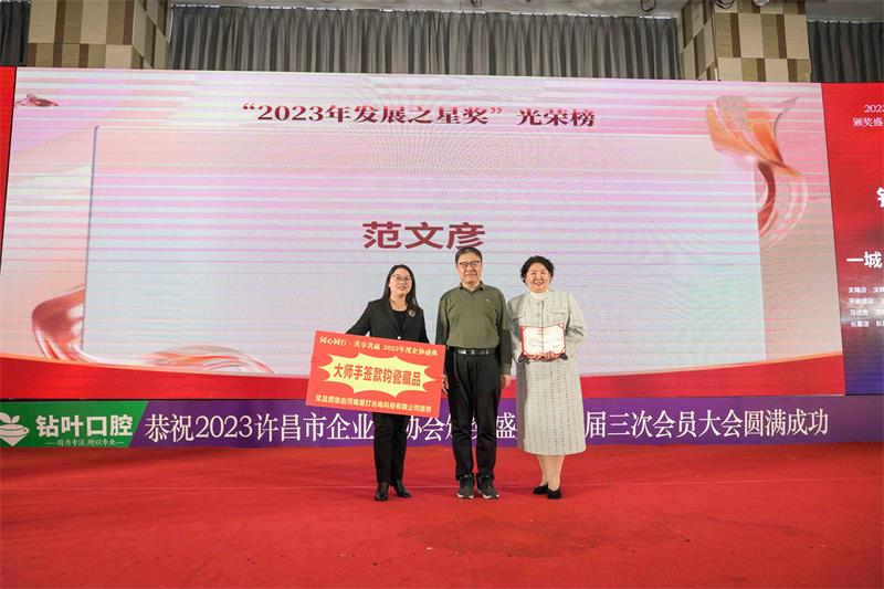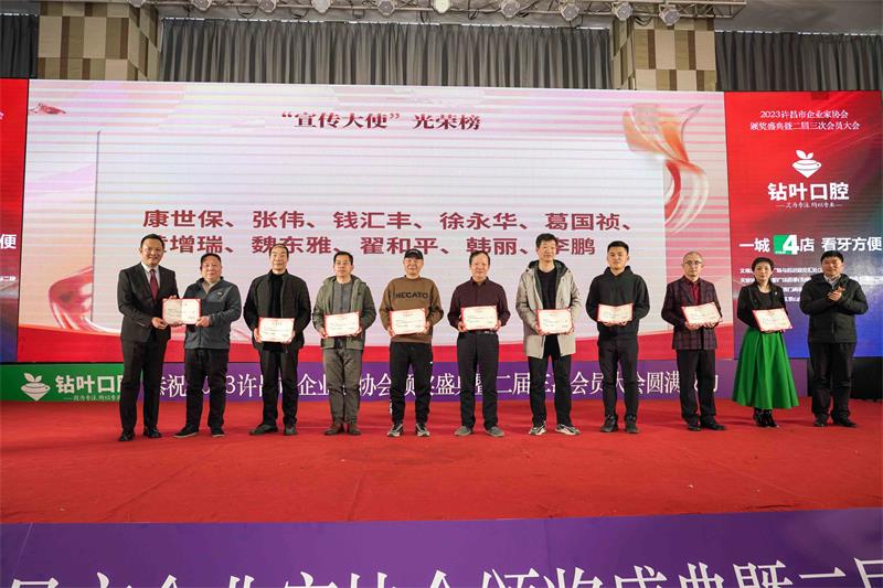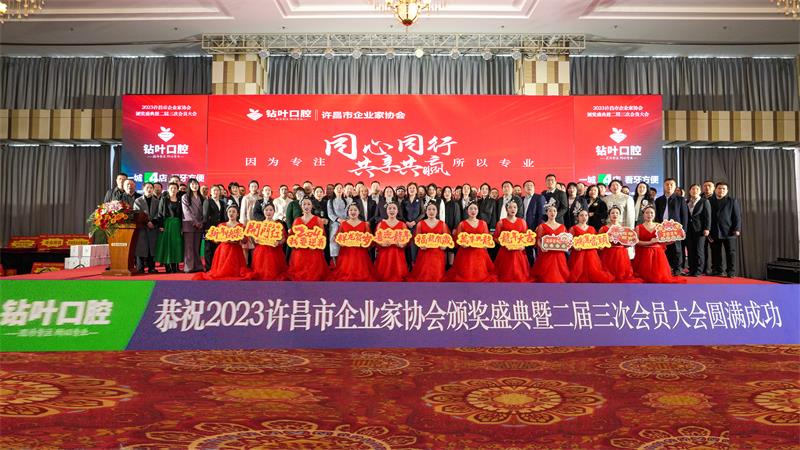 辭舊迎新,歲回律轉(zhuǎn)。揮手告別難忘的2023,昂首跨入充滿希望的2024。1月13日下午,由許昌市鉆葉口腔連鎖總冠名的“同心同行?共享共贏”許昌市企業(yè)家協(xié)會2023年度頒獎盛典暨二屆三次會員大會在中原大酒店百合廳成功召開。協(xié)會邀請了中共魏都區(qū)委、市工商聯(lián)、市發(fā)改委、市黨史和地方志研究室、市民政局、市婦聯(lián)、許昌人才集團(tuán)、市廣播電視臺、河南映象網(wǎng)、許昌日報社、許昌市商丘商會等相關(guān)部門領(lǐng)導(dǎo)及協(xié)會會員200多人參加了本次年會。