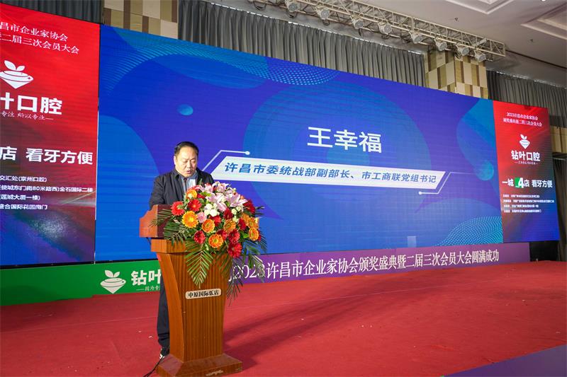 許昌市統(tǒng)戰(zhàn)部副部長、許昌市工商聯(lián)黨組書記王幸福致辭:首先對協(xié)會召開的表彰盛會表示祝賀,希望各位企業(yè)家能夠繼續(xù)發(fā)揚創(chuàng)新精神,不斷開拓進(jìn)取,為實現(xiàn)中華民族偉大復(fù)興的中國夢貢獻(xiàn)自己的力量。同時,也希望企業(yè)家協(xié)會能夠發(fā)揮更加重要的作用,為企業(yè)家提供更加優(yōu)質(zhì)的服務(wù),促進(jìn)企業(yè)之間的交流與合作,為我市經(jīng)濟(jì)社會高質(zhì)量發(fā)展,建設(shè)城鄉(xiāng)融合共同富裕先行試驗區(qū)貢獻(xiàn)力量。
