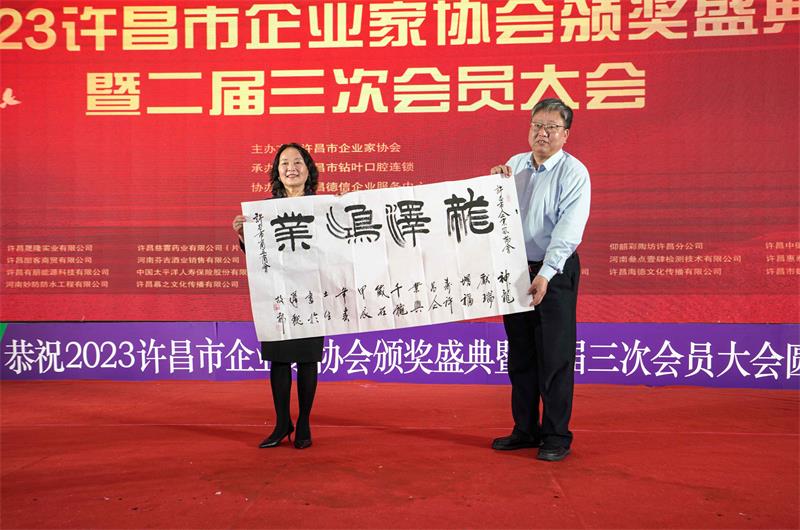 許昌市企業(yè)家協(xié)會黨支部書記何志東宣讀表彰決定,相關(guān)領(lǐng)導(dǎo)為獲獎單位和個人頒獎。