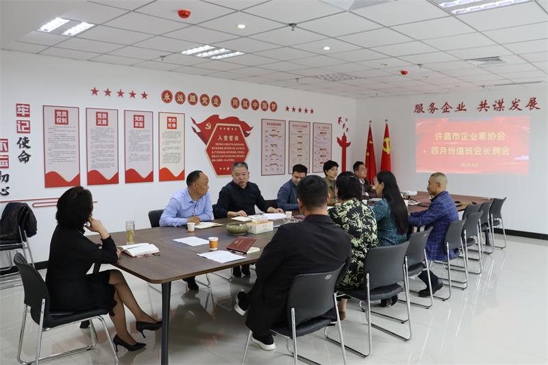 4月8日下午,許昌市企業(yè)家協(xié)會(huì)四月份輪值會(huì)長工作交接會(huì)在許昌市企業(yè)家協(xié)會(huì)會(huì)議室召開,會(huì)議由四月份值班會(huì)長、許昌德信企業(yè)服務(wù)中心總經(jīng)理韋永才主持。