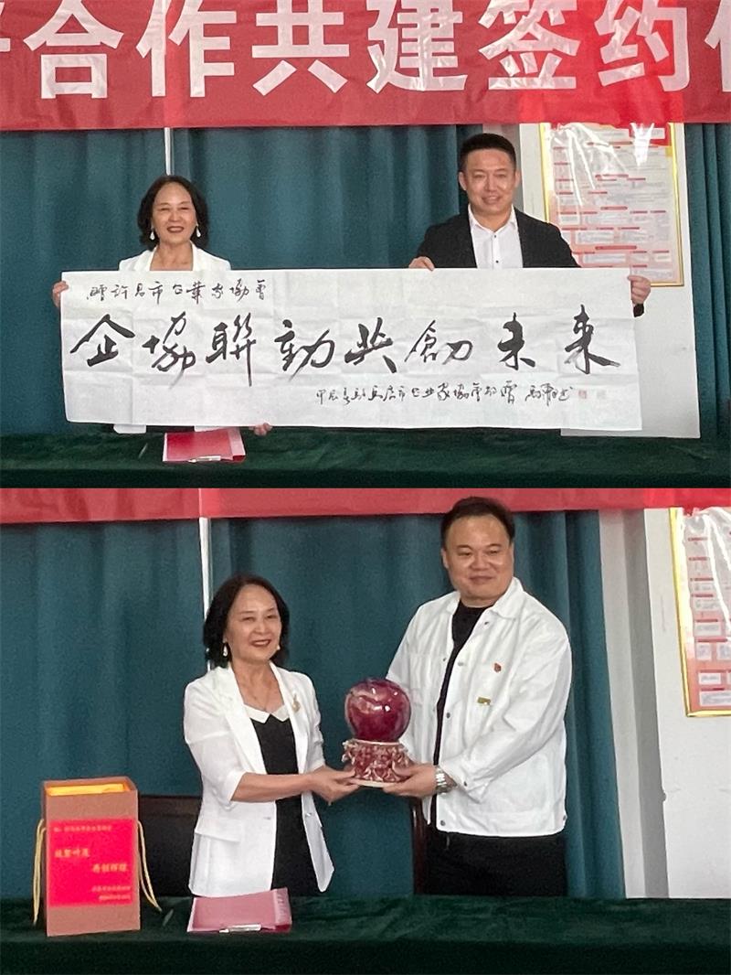 會(huì)上,駐馬店市工商聯(lián)副主席、市企業(yè)家協(xié)會(huì)黨委書記黨進(jìn)代表駐馬店市企協(xié)向許昌市企協(xié)贈(zèng)送名家書法作品《企協(xié)聯(lián)動(dòng) 共創(chuàng)未來》;黃玉霞秘書長(zhǎng)代表許昌市企協(xié)向駐馬店市企協(xié)回贈(zèng)由河南省工藝美術(shù)大師鈞瓷《財(cái)源滾滾》。一卷墨寶、一件珍品,藝術(shù)與古典交相輝映,傾注了兩地協(xié)會(huì)的溫暖情誼,同時(shí)也傳遞了雙方的美好祝福。