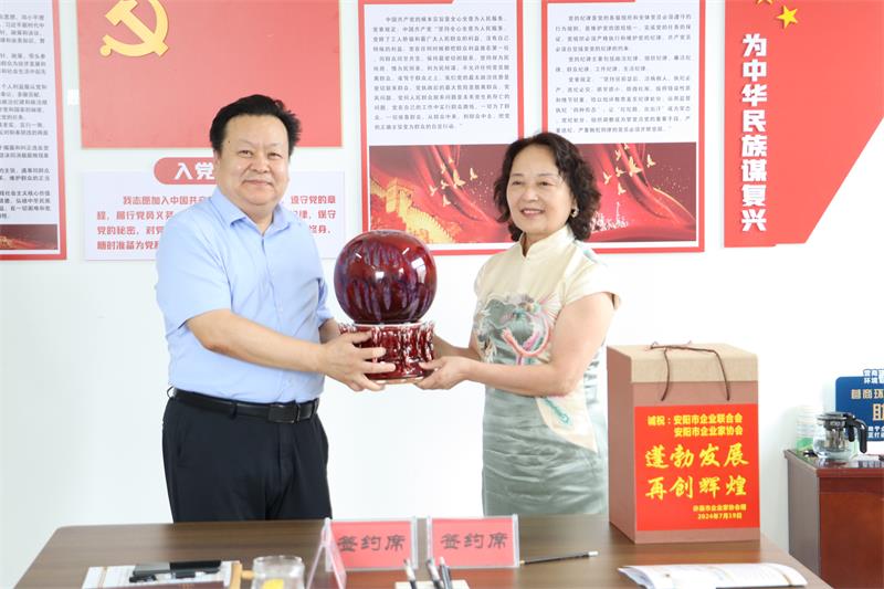 秘書長黃玉霞、七月份輪值會長婁玉陣、八月份輪值會長任天培、一月份輪值會長錢俊霞、七月份輪值副會長張?zhí)┟竦纫恍?人先后參觀了安陽市企業(yè)家協(xié)會黨群服務中心和企協(xié)文化長廊。在隨后的交流環(huán)節(jié)中,許昌市企業(yè)家協(xié)會與安陽市企聯(lián)舉行友好合作簽約儀式。雙方就如何更好地做好協(xié)會工作,服務黨政大局、助力企業(yè)發(fā)展等進行了深度交流。大家一致認為,在當前的大環(huán)境下,不僅企業(yè)間要做到抱團取暖,協(xié)會之間也要加強聯(lián)系,相互學習借鑒、共享資源、共謀發(fā)展。