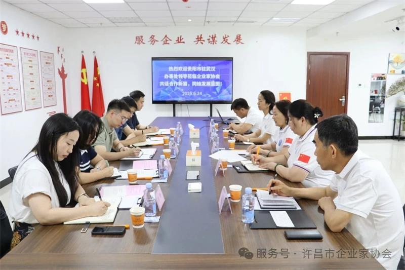 2025年6月24日上午,貴陽(yáng)市人民政府駐武漢辦事處副主任姚固濤一行5人到訪我會(huì)進(jìn)行工作交流。協(xié)會(huì)秘書長(zhǎng)黃玉霞、常務(wù)副秘書長(zhǎng)范文彥、本月份值班會(huì)長(zhǎng)李偉平、四月份值班會(huì)長(zhǎng)韋永才、七月份值班會(huì)長(zhǎng)張?zhí)┟窆餐哟⑴e行座談。
