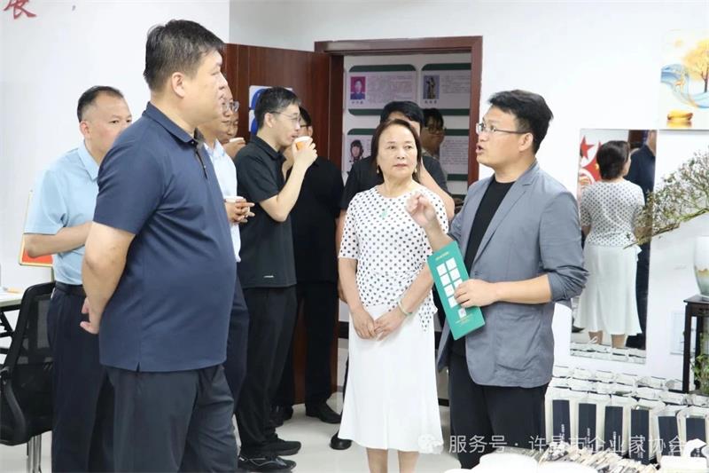 在黃玉霞的陪同下,考察團首先參觀了協(xié)會黨建文化陣地,詳細了解協(xié)會"黨建促會建"的特色工作模式。隨后,考察團重點參觀了會員企業(yè)產(chǎn)品展示區(qū),黃玉霞就會員企業(yè)產(chǎn)品種類、綠色健康及市場銷售等方面作了詳細介紹。